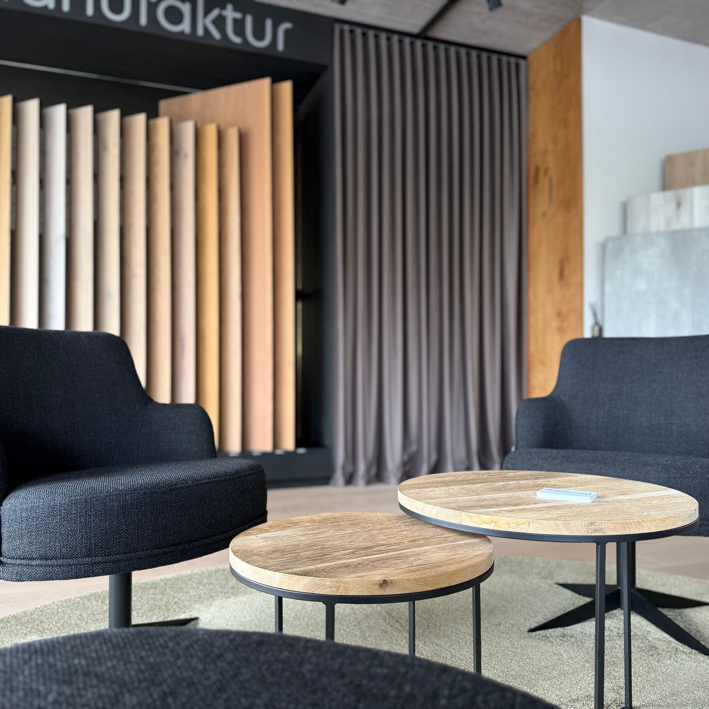 Hier erleben Sie Materialien im Raum, vergleichen Strukturen und gewinnen ein Gefühl für Wirkung und Zusammenspiel.